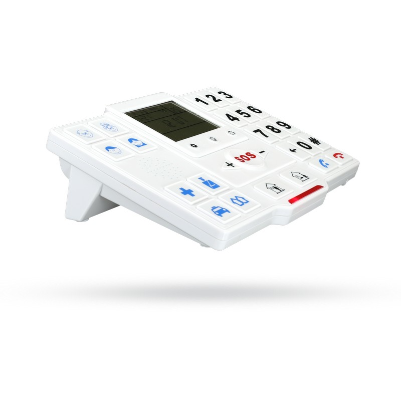 Centrální jednotka systému přivolání pomoci má velký přehledný displej a velká tlačítka, která zvládnou používat i osoby se zhoršujícím se zrakem. Jedním stiskem lze vyvolat telefonní hovor na jeden z osmi přednastavených čísel nebo přímo vytočit číslo na klávesnici. Hovor probíhá hlasitě a hlasitost lze nastavit s ohledem na potřeby uživatele. Stiskem SOS tlačítka nebo bezdrátového tlačítka dojde navíc i k odeslání SMS s informací o požadavku na pomoc.