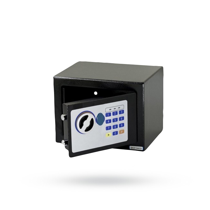 Zámek trezoru je na PIN-kód a umožňuje uživateli snadnou obsluhu. K trezoru je dodáván i klíč, kterým je možné trezor otevřít v případě nouze. Kvalitní kovové provedení, možnost uchycení na zeď.