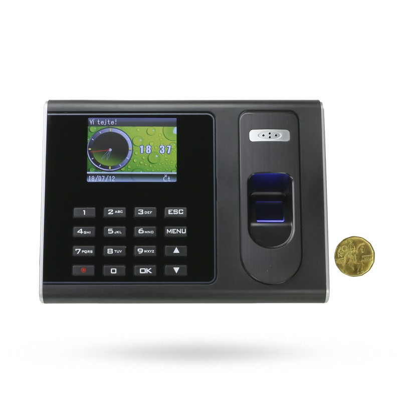 Docházkový terminál na otisky prstů je vhodným řešení pro vedení docházky do malých až středních podniků. Terminál je možné umístit volně na stůl, nebo jej pomocí šroubů zavěsit na stěnu. Terminál je vybaven čtečkou otisku prstů, zaměstnanec si tak nemusí pamatovat heslo k načtení stačí pouze přiložit prst na čtečku a terminál si jeho přichod již sám uloží do paměti. Systém sám pozná zda-li zaměstnanec přichází nebo odchází na základě jeho přítomnosti.
