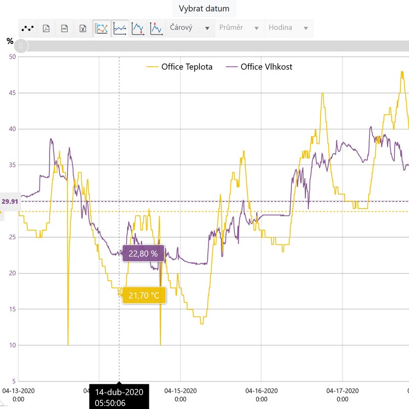 - Měření teploty: -30 až +80°C s přesností ±0.2°C