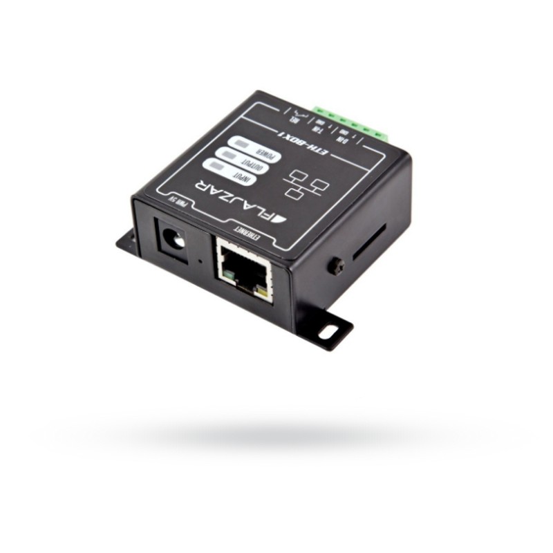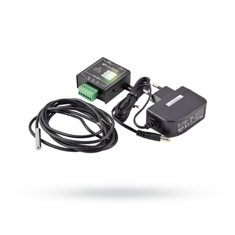 Malý ethernetový komunikátor s možností připojení externího teplotního čidla (součástí dodávky), vybaven univerzálním digitálním vstupem (zapnuto / vypnuto, otevřeno / zavřeno) a reléovým výstupem. Graficky velmi příjemné a přehledné rozhraní, zobrazující aktuální teplotu, stav vstupu a relé. Snadno ovladatelná tlačítka podporující dotykové displeje (mobilní telefony a tablety). Dále umožňuje nastavení rozsahu termostatu, zaslání emailu v případě překročení nastavené teplotní meze, ochrana heslem